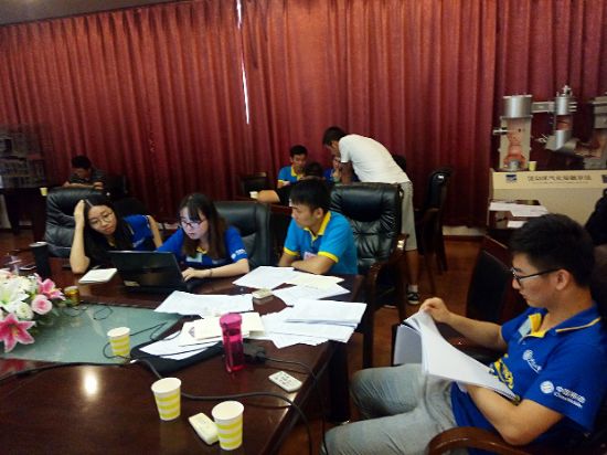 8月8日,是荏原实习的第二天,公司为两个团队安排的活动是模拟竞标。为增进两个团队间的了解,将两个团队的20名成员平均分为4组。虽然来自不同的学校,不同的研究方向,但在共同的目标下,为在规定的时间内完成竞标任务,大家合理分工,相互合作,积极讨论。竞标需要制作工艺说明书、烟气流程图和燃烧图,同时需要在竞标时向招标单位详细介绍自己的技术特点和优势,这对大家的专业知识和合作能力都是一种锻炼。