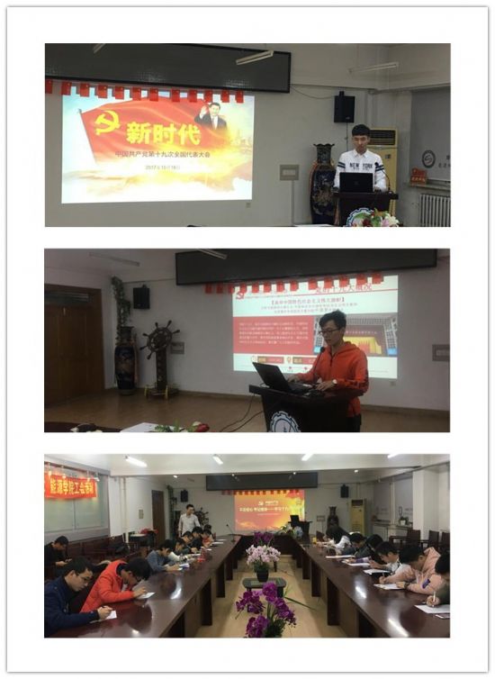 流体机械及工程所研究生党支部在动力楼619召开组织生活会,学习十九大报告精神,会议由党支部书记李国栋主持,支部党员和积极分子出席了本次组织生活会,14级本科生第二党支部书记庞松健列席本次大会。