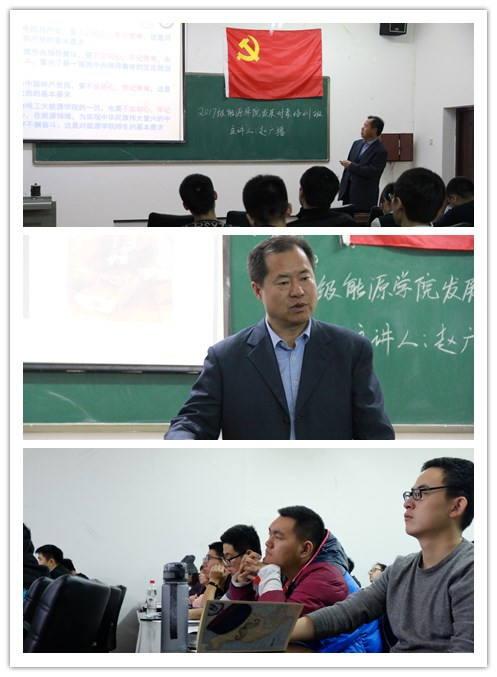 11月9日,黑人av 分党校2017年秋季学期发展对象培训班第四讲在节能楼312顺利举办,本次党课以“不忘初心,牢记使命”为主题,黑人av 院长赵广播教授主讲。