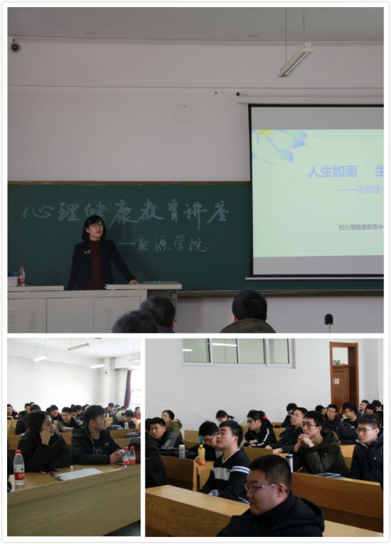 整个讲座分为健康与心理健康、研究生心理健康的影响因素、心理健康的控制策略三大部分。王老师以两幅图片为引,让大家理解不同个体对同种事物的不同感受。然后,王老师用具体事例详细讲述了美国人本主义心理学家马洛斯和迈特尔曼的心理健康标准。第二部分,王老师以抑郁症为例阐述了人们对抑郁症的错误认识、病症表现以及面对病症的正确心态。此处,老师强调,抑郁症是心灵感冒,不能讳疾忌医,同样不应对心理疾病抱有偏见。最后,王老师从解决、解释、解放三个层面讲述了心理健康控制策略的方法步骤。解决,在于克服困难,解决问题并建立内在安全感;解释,在于调节思维,重新定义,关注事物的多面性,找寻积极面,减少负面情绪;解放,在于调整生活方式,释放压力。讲座的最后,王老师以一句话做结,“生活就像是玩扑克,发到的那手牌是定了的,但是你的打法是属于你的自由意志的。”