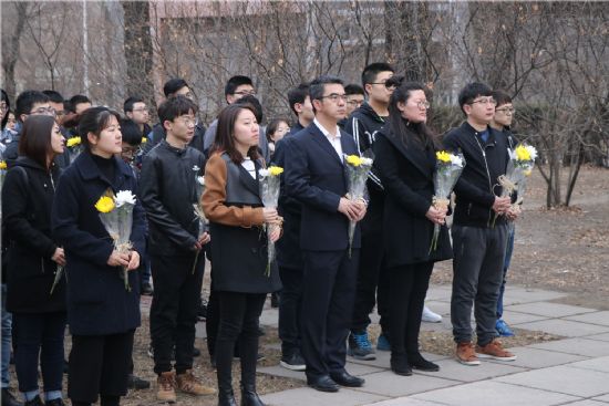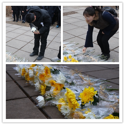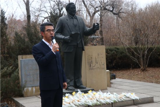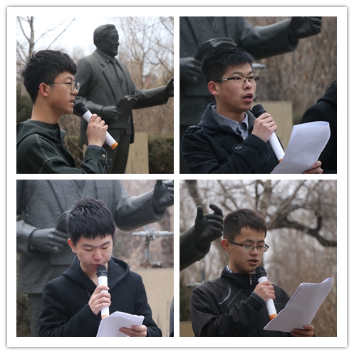 6点半,全体人员身穿深色便装、表情肃穆,按照顺序向马祖光院士献花及默哀。杜传铭、李彤煜、管仁文作为学生代表,饱含深情地诵读了自己创作的诗歌,讲述马祖光院士的动人事迹。马祖光院士厚德博学,是国内外激光领域的知名学者,他高尚的精神品格、先进的事迹流芳后世,始终激励着一代又一代哈工大人。马祖光院士一生为我国的科研事业做出了巨大贡献,培养了一批又一批的人才,但却在生活上勤俭简朴,从不追求名誉,“三拒院士”的事迹也广为流传。同学们认真聆听,为之动容,“每次重温马祖光院士的先进事迹,都能感受到马祖光院士身上永不放弃的精神、甘为人梯、无私奉献的品质与对党和人民忠诚不二的人格魅力。”学生党员戈朝强说。