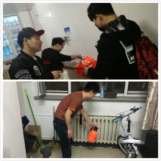 研究生辅导员蔡文雪老师带领,各个班级班长配合进行,在这次消毒活动中,我们主要对宿舍的边边角角喷洒了消毒药水,并进行通风换气,在此过程中蔡老师针对卫生比较差的宿舍,提出了批评,让他们整改宿舍卫生,同时也对卫生较好的宿舍提出了表扬。在这次消毒活动中,班长同学都十分配合,同学们对消毒也十分欢迎,所以消毒进行十分顺利。