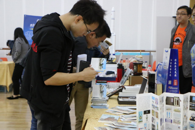 “航天青聚夜”还设置了特色航天集市,集市上布置了大量航天系列书籍、画册和纪念品,模拟宇航环境拍照,宇航服试穿,与航天员人形展架合影,众多青年学子参与其中,近距离感受了航天的魅力,体味航天动人色彩。