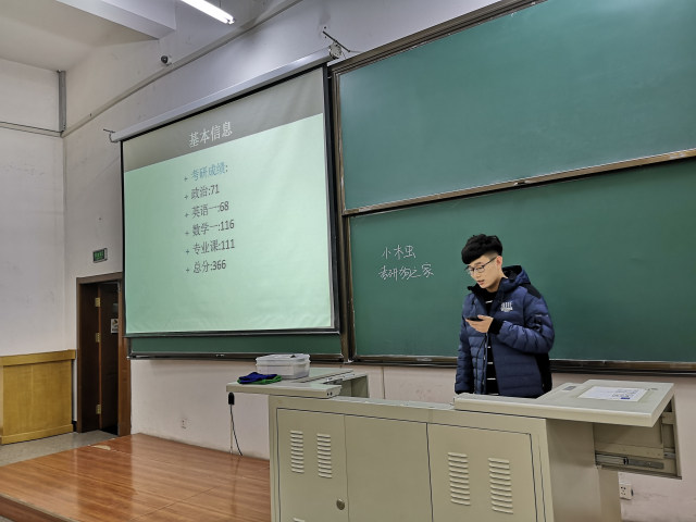 林佳琦首先为同学们分享了自己考研失利的经历与收获,同时指出要坚守内心的想法,在考研和工作之间尽快做出抉择。然后为大家讲解了一些考外校需要准备的事情,最后分享了一些有关考研调剂信息方面的资源。任冠男则注重于分享考研的相关流程,以及每个阶段每天的复习计划和时间分配,同时为大家推荐了一些准备考研过程中需要的书籍、平台以及辅导视频。张楠结合自身经验十分详细的为大家分析了不同老师复习视频的特点,指出了各个学科的重点复习时间和复习方向,以及专业课考试的相关知识。最后三位学长的答疑环节也纷纷解决了大家的疑问。