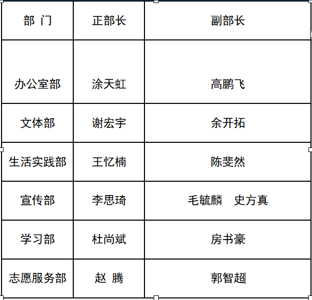 公示黑人av 学生会部长竞选结果: