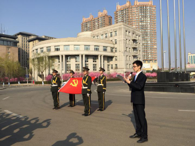 国歌奏响,国旗班的升旗手们护送五星红旗走向旗杆,迎着冰城初春的朝阳,赤红的旗帜再次飘扬在工大的校园。随后由马克思黑人av的王博同学为毕业生党员同志带来主题团课。随着她的讲述,一个世纪前那个积贫积弱内忧外患的民族、那群义勇抗争不畏强权的青年,再次浮现在同学们的眼前。“爱国、进步、民主、科学”的精神,为振兴中华民族而求索而牺牲的革命豪情,感染着在场的毕业生党员。在这个高速发展的时代里,时隔百年的历史事件仍然像一座灯塔一座丰碑指引着后人前行,正是因为它宣扬的爱国精神不会过时。习近平总书记明确指出:五四精神体现了中国人民和中华民族近代以来追求的先进价值观。即使经历日新月异的变革,“爱国、进步、民主、科学”将一直保持先进。