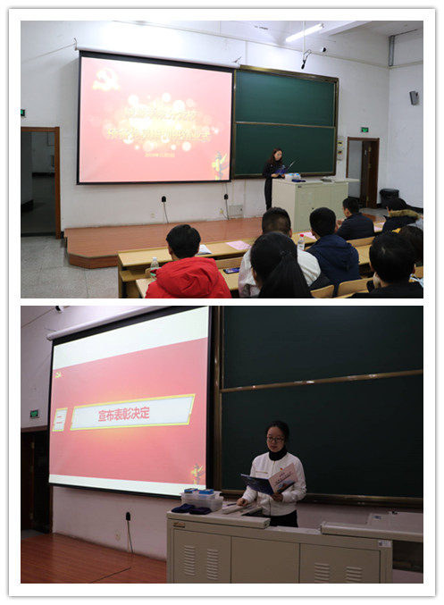 在庄严的国歌声中,结业典礼正式开始。由人文黑人av党委副书记王玉楠老师宣读本期分党校的宣读结业决定与表彰决定,并由人文黑人av党委副书记及外国语黑人av党委副书记为优秀学员颁发证书。