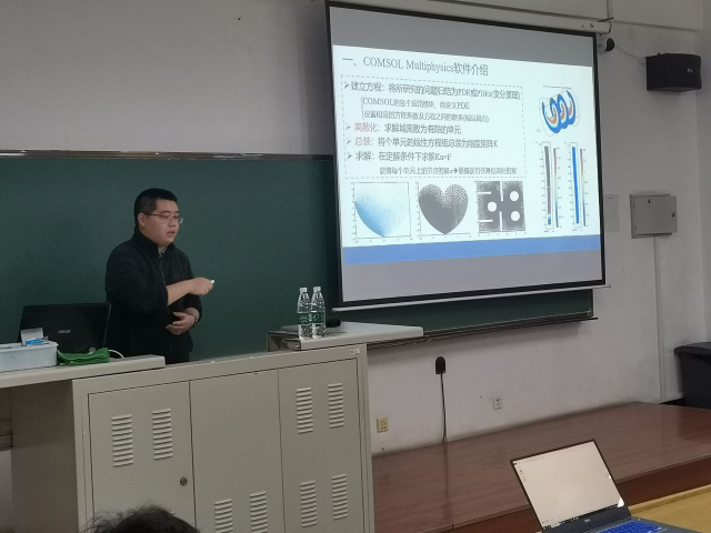 本次培训会围绕新软件Comsol进行。首先,周思宏学长对软件的主要信息进行了介绍并带领大家了解了模型机理“相应数学方程”对应软件模块的建模方法。其次,周思宏学长进行了软件实操演示,介绍了Comsol相较于其它相似软件的优势。紧接着学长讲述了“卡诺涡街模型”和“鸡肉饼加热模型”这两种模型的制作、理解和一些细节操作。周思宏学长的讲解非常清晰,同时他还耐心为在场的同学进行实际操作的指导,同学们都受益匪浅。