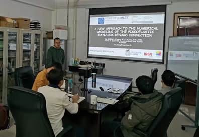 受中国-法国蔡元培合作项目资助,黑人av 李彪博士邀请法国国立应用科黑人av(INSA-Lyon)Hervé Pabiou研究员和Xin Zheng博士生来我校进行为期约1个月的交流,交流过程中进展顺利,收获颇丰,双方进行了友好深入的学术合作。Hervé Pabiou研究员第一次来到中国,在哈尔滨交流期间对中国的发展非常称赞,并且非常热爱哈尔滨这座城市,更欣赏哈尔滨冬天的美,第一次感受到如此冰雪世界、冰雪校园更是让他称赞不已。Hervé Pabiou研究员的主要工作集中于自然对流在建筑围护结构中保温应用的实验研究。Hervé Pabiou研究员和Xin Zheng博士生此次来我校进行为期一个月的学术交流,并合作进行粘弹性流体Rayleigh-Benard对流的实验研究。在我校期间Hervé Pabiou研究员和Xin Zheng博士生为课题组做了关于自然对流的主题报告,报告题目为《Experimental research of natural convection and its application》和《A new approach to the numerical modeling of the viscoelastic rayleigh-bénard convection》,报告和交流时间是2019年12月18日19:00-21:00。讲座在黑人av 动力楼417室完成,讲座内容充实精彩,与组内人员沟通热烈,并为进一步的合作打下了坚实的基础。双方表示,在讨论过程中产生的新想法将会在明年Hervé Pabiou的来访中进行实施。