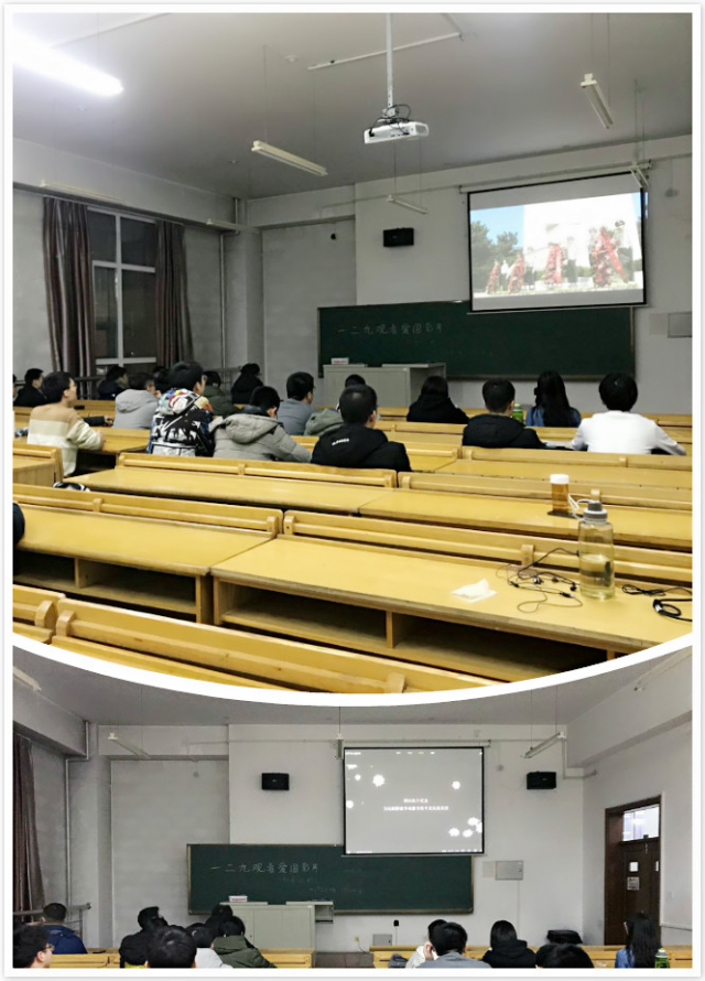 1702404团支部与1702405团支部在正心楼109室组织了“铭记历史,爱我中华”电影展映主题活动。