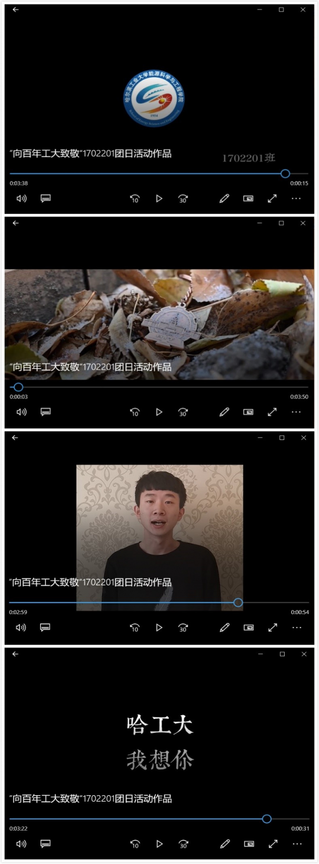在活动准备阶段,支部同学们各抒己见,从形式到内容都进行了多次的更改,最后确定了通过视频的方式留下一份属于哈工大和我们的特殊记忆。这份礼物是全班同学共同努力的结果,大家在家中录制了祝福黑人av 100周年生日快乐的视频和想对哈工大说的心里话,再由班级的组织委员精心剪辑、变成一份难忘的回忆。