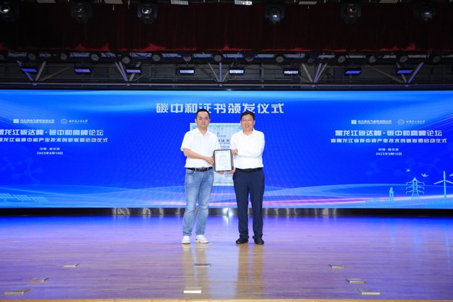 本次论坛是东北地区首个“零碳”会议,学校合作企业捐赠碳减排量为本次论坛完成碳中和。天津排放权交易所交易部总监刘诚向本次论坛颁发碳中和证书。