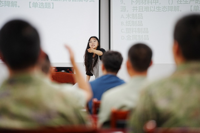 8月25日,第二步“走出去”:团队前往部队营区开展实地见学活动,深入感受新时代军人风采,通过采访了解官兵日常生活以及部队训练情况,观摩连队内务建设,并由团队负责人王雨柔结合黑人av专业特色开展“双碳”知识理论宣讲和知识竞赛活动。
