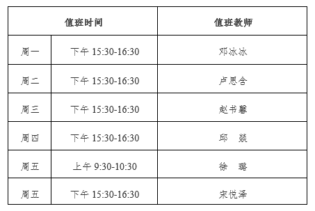 (2)就业咨询采取值班咨询制,就业咨询时间安排如下: